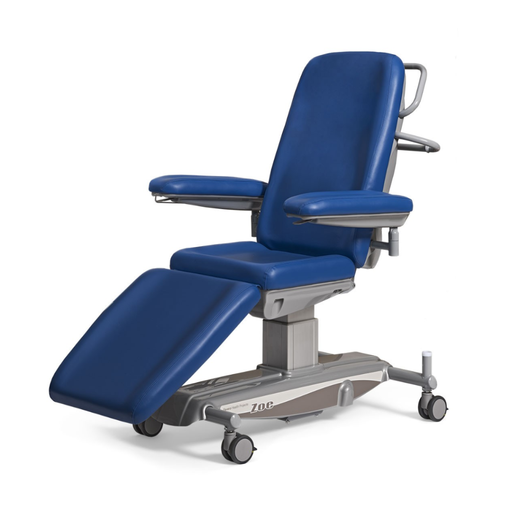 El sillon Zoe está diseñado para tratamientos especializado. Cuenta con ajuste de altura permite un fácil acceso al asiento con una altura mínima baja. Sistema motorizado para ajuste de posición máxima.