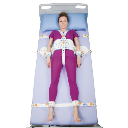 Versión Slim: Permite una contención segura y adaptada a pacientes de complexión delgada en cama, silla de ruedas, silla o sillón. Ideal para la atención domiciliaria por su seguridad, comodidad y sencillez